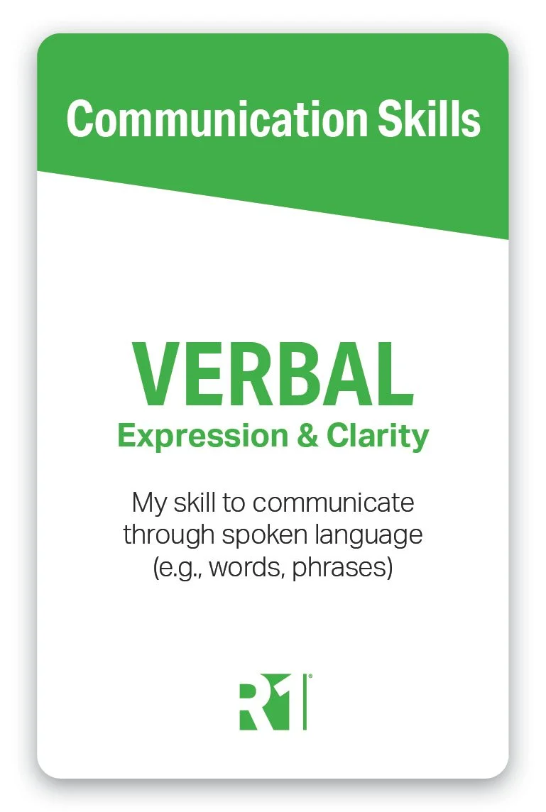 Verbal — Expression & Clarity: My skill to communicate through spoken language (e.g., words, phrases)