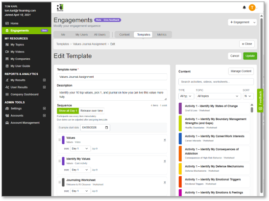 Build templates with content sequences and assign to users.