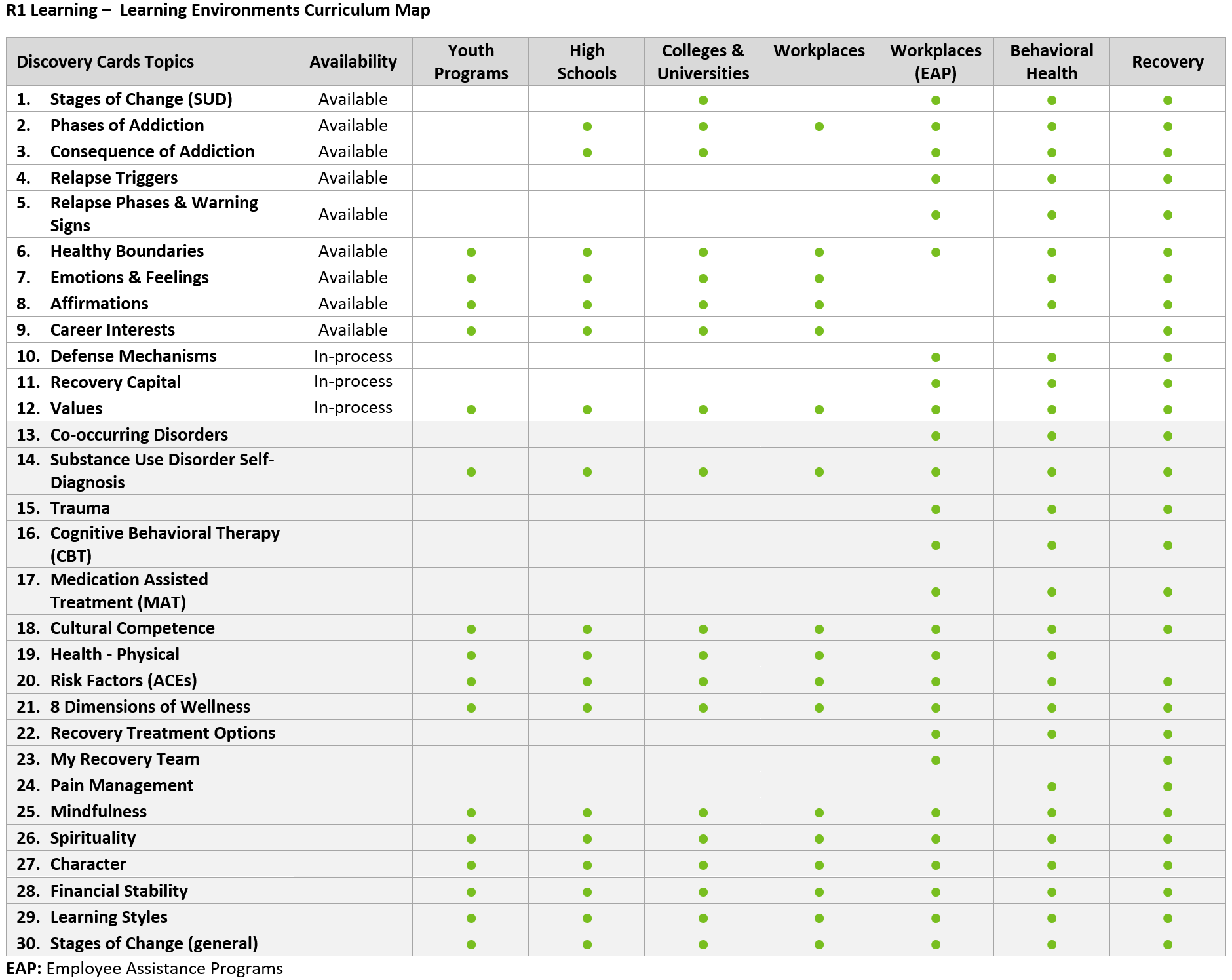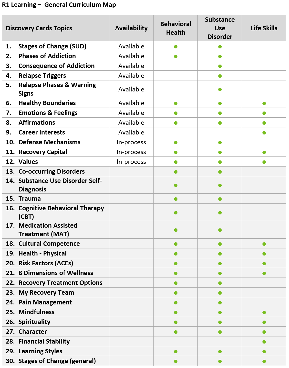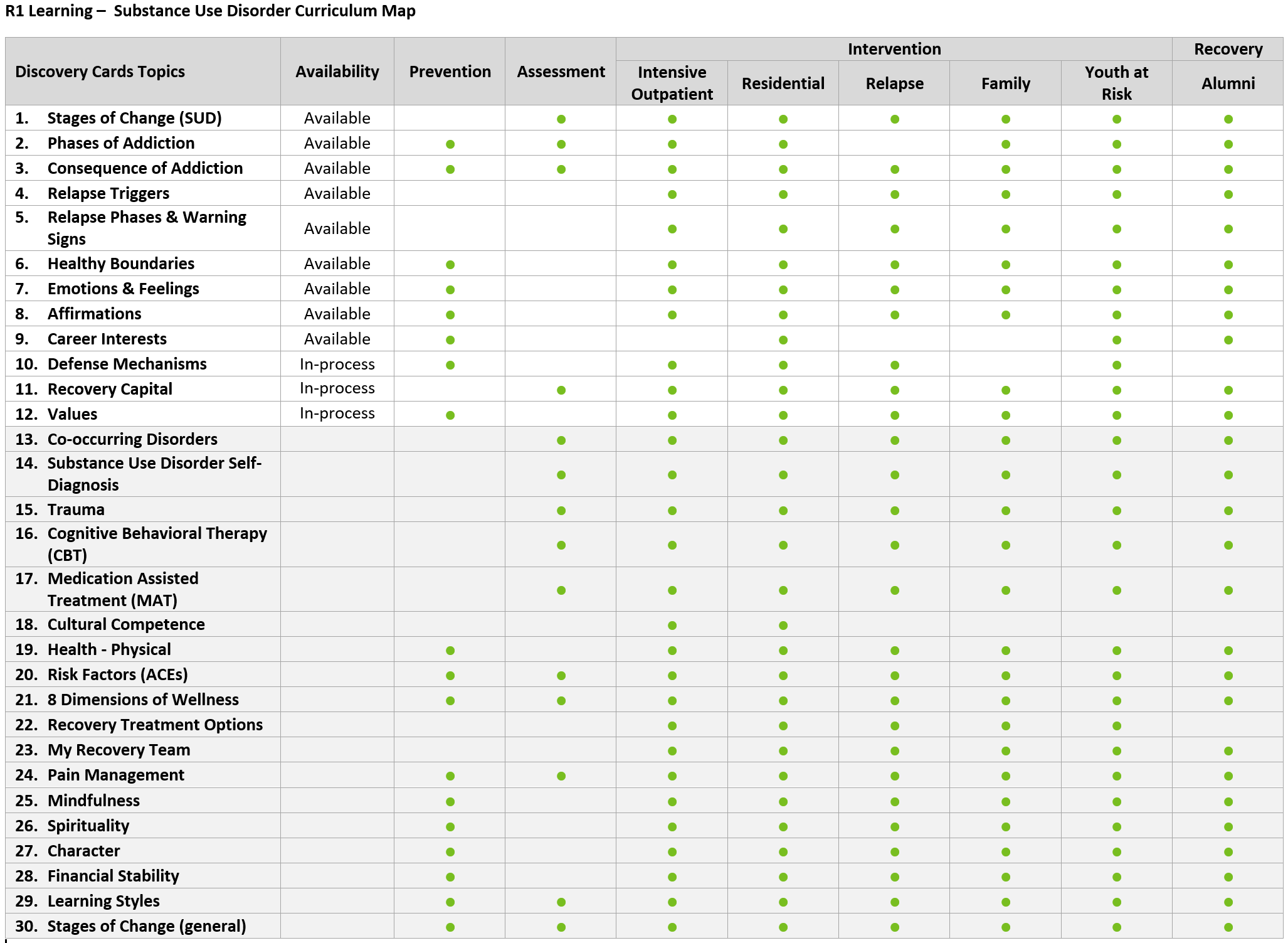 R1 Discovery Cards - Substance Use Disorder Curriculum Map